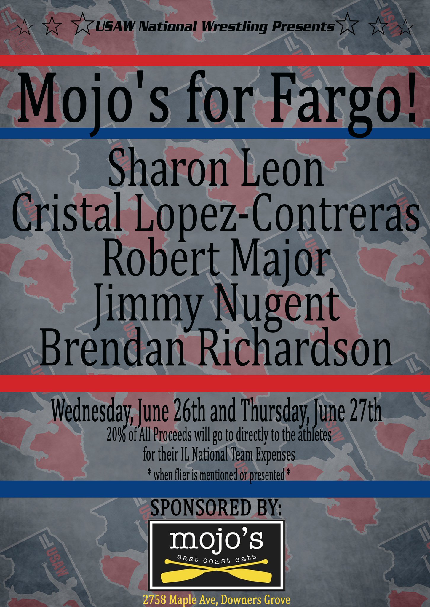 - Mojos for Fargo- Eat at Mojo's East Coast Eats on Wednesday, June 26th or Thursday, June 27th and mention or show this image and 20% of the proceeds will go to the Fargo trips.